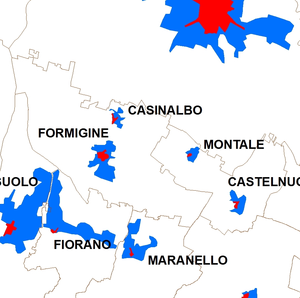 Aree urbanizzate nell’alta pianura modenese.