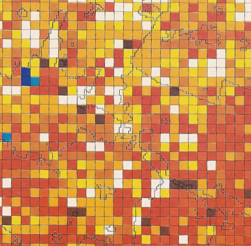 Carta del comprensorio di Modena con la distribuzione dei prelievi medi di acque dal sottosuolo per aree di 25 ha.