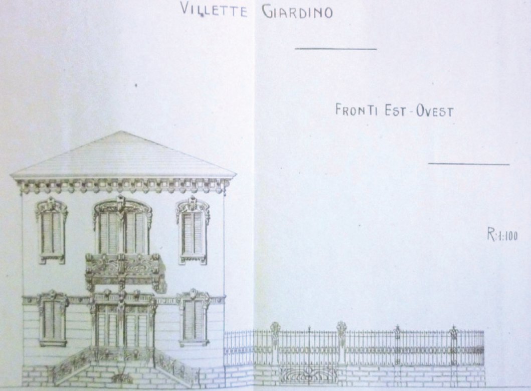 L’edificio sorge nell’area di espansione est della città lungo la via Emilia, immediatamente fuori dal tracciato della cinta muraria, su terreni di proprietà dei fratelli Solmi, proprietari terrieri e imprenditori edili, molto attivi a inizio Novecento. L’“Impresa Giardino” di proprietà degli stessi commissiona a Gustavo Zagni la realizzazione di due blocchi di case a schiera: uno da edificare nell’area sopra citata, da destinare a “villini ad ammortamento”, come nelle previsioni del piano del 1909, e un secondo localizzato in via Bondigli (oggi al civico 30), destinato a “case d’affitto per impiegati”. Un terzo progetto non realizzato doveva sorgere fuori porta San Francesco, su un modello tipologico di residenza destinata alla piccola borghesia, presente in alcuni quartieri di “Milano, Torino e Genova”.