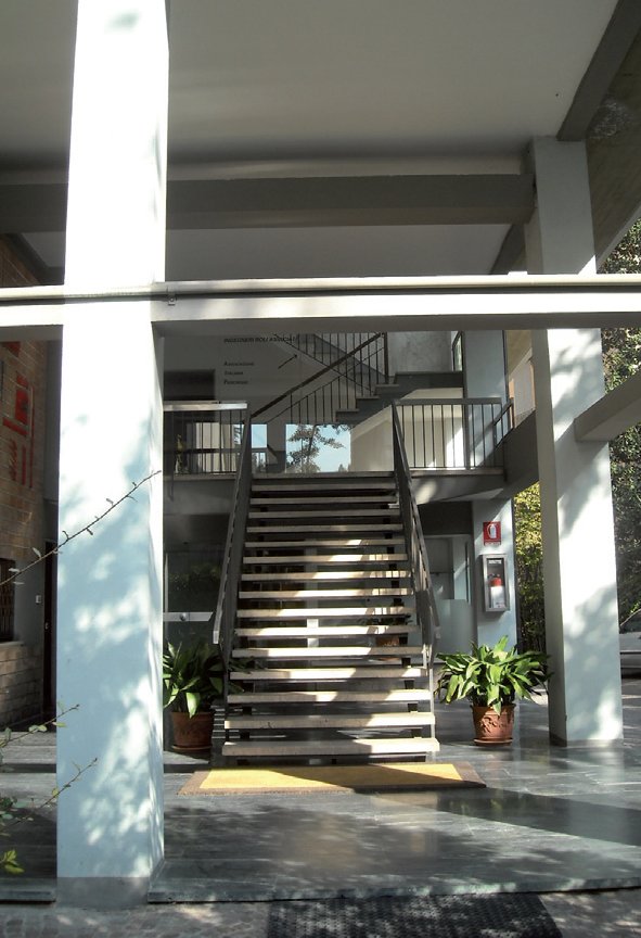 2. Vista della scala d’accesso al primo livello nell’atrio porticato