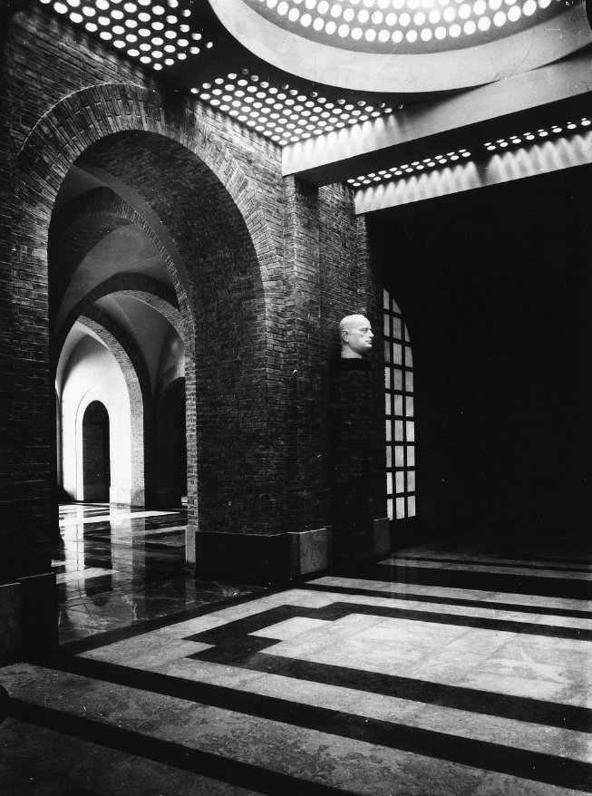 Come riportano le cronache dell’epoca, si attendeva dal progetto l’introduzione di nuovi linguaggi ottenuti dall’uso di materiali moderni quali l’acciaio, il ferro, il vetro. L’aspetto degli spazi rimanda invece a un rigore che guarda all’antico attraverso i rivestimenti marmorei, accentuato dall’apparato iconografico rappresentante simboli fascisti realizzato da Benito Boccolari e dal programma scultoreo di busti e bassorilievi a opera di Dante Zamboni in parte ancora oggi visibile, raffigurante scene di esaltazione dei valori della vita rurale.