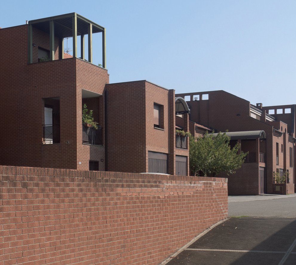 Forte dell’esperienza già maturata in ambito residenziale con il villaggio Zeta (1963-69) e il villaggio Giardino (1970-71), Tiziano Lugli si cimenta negli anni Ottanta con il piano particolareggiato per il nuovo Quartiere Torrenova commissionato dall’omonimo consorzio, progettando inoltre gran parte degli edifici. L’area interessata è compresa fra via Nonantolana a est, la tangenziale a nord e via Albareto a ovest. Il progetto si caratterizza per una edificazione compatta, nonostante si articoli in diverse tipologie e tagli d’alloggi, dal villino a schiera alla palazzina ad appartamenti. A strutturare l’intero complesso è infatti la cosiddetta Piazza Alta, una spina centrale pedonale minuziosamente disegnata anche negli arredi e nel verde. Essa collega inoltre la zona dei servizi su via Nonantolana, dove si trovano un centro civico, un supermercato e la farmacia comunale, con la fascia a parco prospiciente la tangenziale, articolata con percorsi in quota su un rilevato artificiale che funge da protezione rispetto alla importante arteria viabilistica. In generale, tutte le tipologie sono articolate secondo uno schema a corti chiuse, nel tentativo di evocare un’urbanità perduta attraverso la riscoperta di tipi tradizionali ad alta densità. Anche nel linguaggio adottato è evidente il recupero di elementi tradizionali che si rifanno a una supposta “memoria industriale”. Al di là di certe inflessioni tipiche del postmodernismo caratterizzante gli anni Ottanta, come l’uso di logge, bow window, marcapiani e cornicioni, l’adozione generalizzata del mattone a vista rimanda anche a una tradizione rurale tipicamente locale. Landmark ben riconoscibile per chi giunga dal centro città è l’alta torre in vetrocemento, collocata in corrispondenza di un vecchio edificio piezometrico demolito, unica concessione a una memoria insediativa del luogo che si è preferito obliterare.