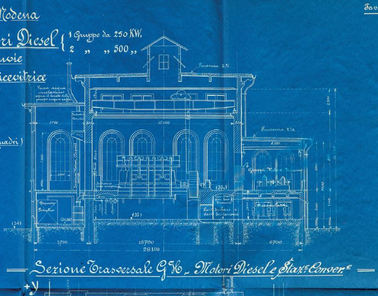 Figura 1 - Sezione trasversale della sala motori Diesel,1911. (ASCMO, foto P. Pugnaghi)