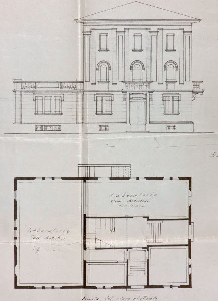 Figura 1 - Prospetto e pianta del progetto originale, 1926. (ASCMO, foto P. Pugnaghi)