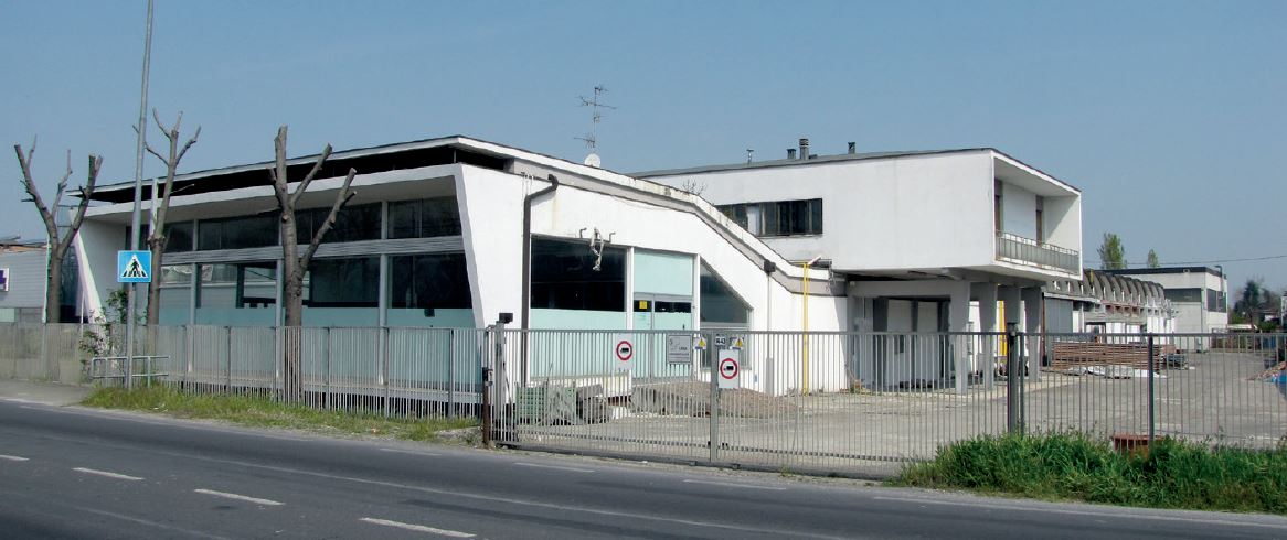 Sopra a questo, accentuato dal profilo inclinato della copertura, un volume a ponte interseca perpendicolarmente il precedente e ospita due appartamenti, separati da un magazzino, entrambi esposti su un due ampie logge disposte a sud e a est, contrassegnanti i fronti di questo corpo di fabbrica, in cui Vecchi recupera un linguaggio rigorosamente razionalista. La varietà espressiva del complesso, poi, si completa con l’officina, illuminata da una copertura costituita da una sequenza di sottili gusci in cemento armato, che dotano questo volume di un effetto plastico dialogante con quello del corpo della sala esposizioni sull’altro lato. Nel 1968 viene presentato un progetto di ampliamento del fabbricato a uso officina per trasportatori meccanici. Oggi l’edificio è oggetto di ristrutturazione e ridestinazione.