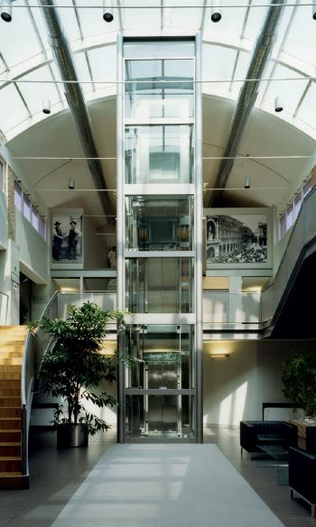 Fulcro del progetto è il grande volume della sala di ingresso illuminata zenitalmente da una copertura a botte in vetro; qui trovano spazio le scale principali e gli ascensori configurando il lungo come una sorta di piazza coperta e accostando il ferro e il legno delle nuove parti con il mattone lasciato a vista delle facciate esistenti.